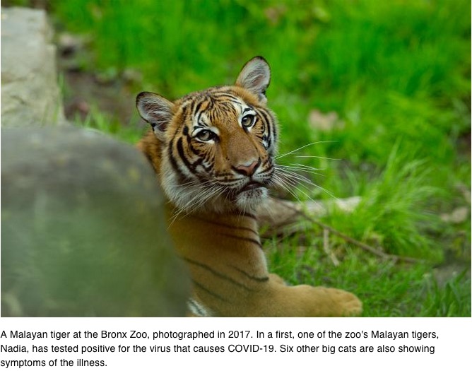 “It’s the first time, to our knowledge, that a [wild] animal has gotten sick from COVID-19 from a person,” says Paul Calle, chief veterinarian for the Bronx Zoo. The Malayan tiger, named Nadia, likely contracted the coronavirus from an infected—but unknown—asymptomatic zookeeper. “It’s the only thing that makes sense,” Calle says. The zoo has been closed to visitors since March 16.