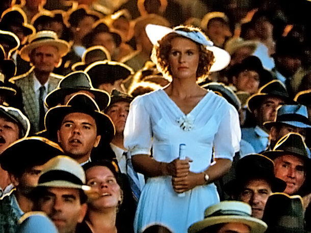 Men wearing a shirt and tie and a fedora to a baseball game and women there wearing a dress and hat  . Maybe not this fancy a hat as in The Natural, BUT hats anyway. Yeah, interesting how now you see fans wearing casual clothes adorned with their team colors and logos.