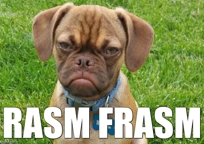 I googled Rasm Frasm and still couldn’t get enlightened. Even the good old urban dictionary hasn't got an entry.  Did this new word just hit the market? Huh. That's odd. Anyway, in the olden cartoons when some cartoon character's plan was foiled and he wanted to curse, instead of saying "motherfucker" or "son of a bitch!" he'd grumpily mutter under his breath "rasm frasm". This way you knew he was letting off with a litany of foul language but he wasn't actually saying anything that would alarm the censors.