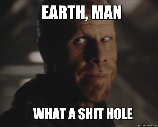 unpleasant. At the end of the extended Special Edition of the movie, it is shown that Paris, France is in ruins, while the surrounding area is a desolate wasteland. The devastation may have something to do with the "Lacerta Plague", which is mentioned in the film by Annalee Call. However, Earth does not appear to have been entirely abandoned — the planet remains the designated home base of the USM Auriga. Johner's comment that Earth is "a shithole" by this time seems to imply that centuries of pollution, war and resource depletion have left Earth in a dilapidated state.