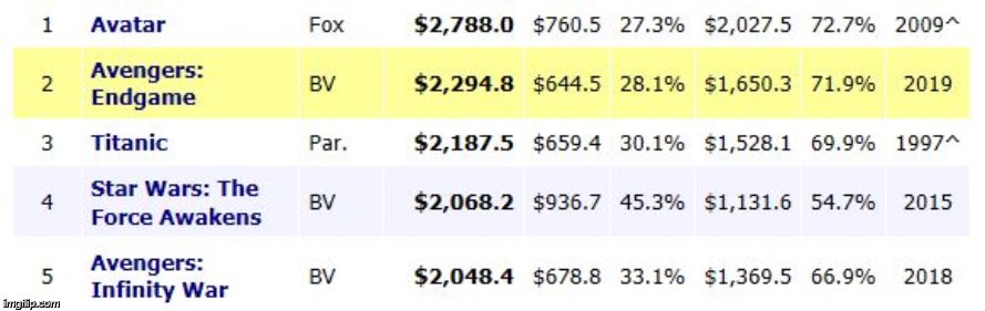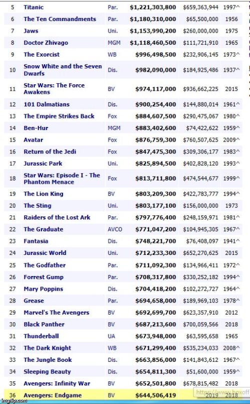 However, defeating Titanic's numbers is not that amazing of a story when you adjust for inflation. (as of 5/9/19)