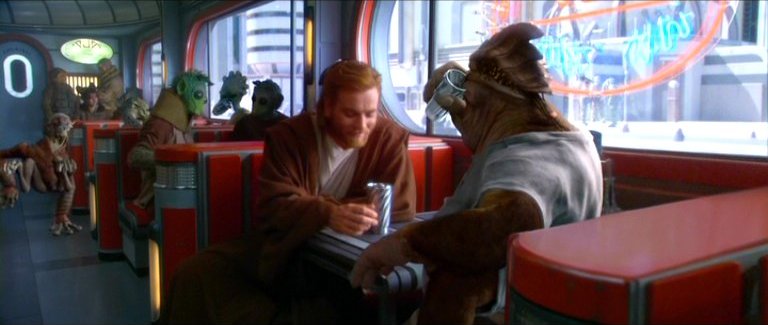 13 Movie Images Showing People Sitting in a DINER BOOTH: 01. Pulp Fiction 02. Goodfellas 03. Mulholland Dr. 04. Rain Man 05. Silver Linings Playbook 06. Moonlight 07. Memento 08. Looper 09. Back to the Future 10. Star Wars: Attack of the Clones (Episode II)