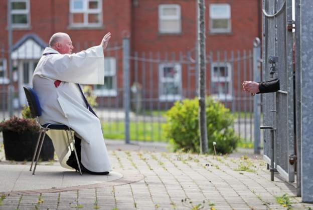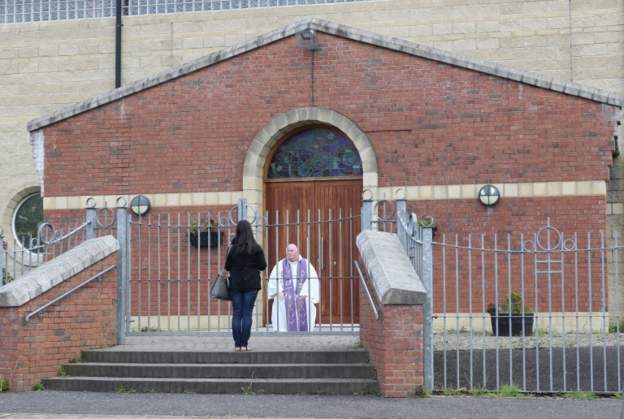 Priest hears open-air confessions in Belfast How do you conduct something as private and intimate as confessions at church while observing social distancing? Father Paddy McCafferty of Corpus Christi Catholic Church in Belfast has the solution - listening to members of his congregation through locked gates. I'd just turn up to listen to what other people were confessing!    P.S. Don't copy all the photos in any reply please.