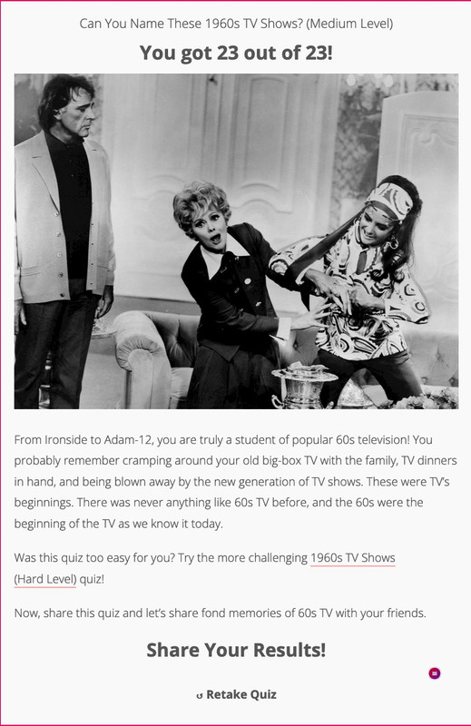 " Can You Name These 1960s TV Shows? (Medium Level) - You got 21 out of 23! "
