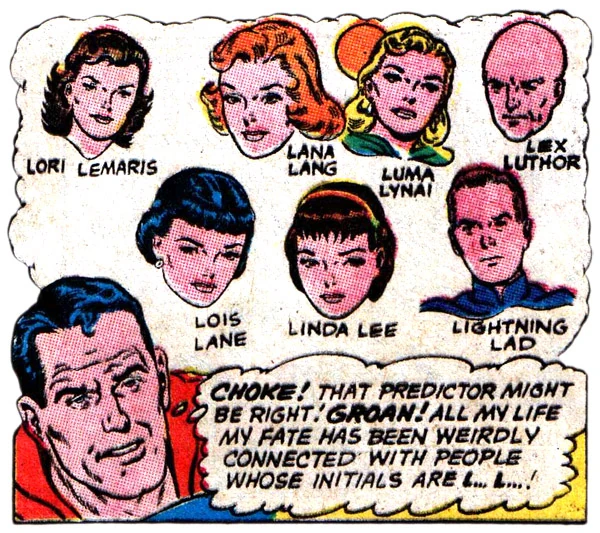 Lois Lane and Lex Luthor. I'm not a comic book nerd or anything, I mean, I collect covers but you know, ha. I just thought I would add that there's two other double "L" names attached to Superman's truest love and truest enemy. Both Lois Lane and Lex Luthor have double "L" named kids. In the comic books, Lois gives birth to Lara Lane-Kent and Lex Luthor's wife Lena gives birth to Lex Luthor Jr. Lara Lane-Kent's first appearance: Injustice: Gods Among Us Year Three #7 (January 2015) Lex Luthor Jr's first appearance: Action Comics #544 (June, 1983) I wish I had these comic books, just because. I'm happy with my other villain first appearances and covers, though. Nothing like the beginning of future stories worth owning and in my case, hanging up on my walls. Hope you like the random trivia, my friend.