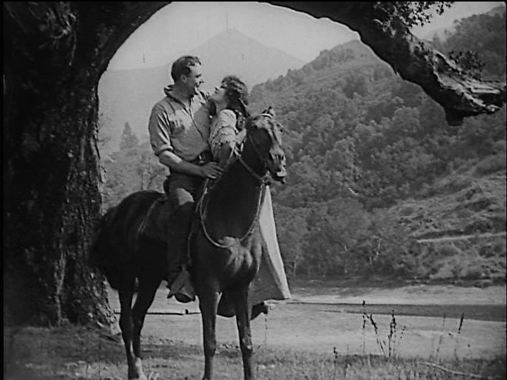 Salomy Jane (1914) Interesting to note that this exciting, albeit primitive melodrama, was lost from 1931 to 1996 when a single copy surfaced in Australia. It is the last surviving film made by the California Motion Picture Corporation and also the only surviving film featuring Latino star Beatriz Michelena who plays Salomy. The film opens with a magnificent shot of Salomy emerging from inside a giant Redwood tree. The camera pans up this massive tree, highlighting the glorious setting among North Californian forests, stunning landscapes feature throughout. An amazing stunt was performed from uncredited Jack Holt in his screen debut, it cost him some broken ribs and the poor horse. With lots of strands to the story and of course standing out, rugged dashing hero House Peters , great entertainment!... "The Man" (Jack Dart) House Peters and Salomy, Beatriz Michelena