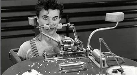 Modern Times (1936) Directed, Written by, Produced and starring Charles Chaplin... A unique late silent comedy film in which the iconic Tramp character struggles to survive in the modern industrialized world, having burnt himself out on the conveyer belt assembly line. Chaplin's film is a comment on the desperate employment and financial conditions many people faced during the Great Depression, a slapstick skewering of industrialized capitalist America. A reference to drugs seen in the prison sequence was somewhat daring for the time. The preservation of humanity in a modern, mechanized world profoundly reflects on issues still relevant in this the twenty-first century... One of the first 25 films selected in 1989 by the Library of Congress for preservation in the United States National Film Registry for being "culturally, historically, or aesthetically significant"