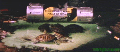 Teenage Mutant Ninja Turtles (1990).   Please find a screenshot of someone singing whilst playing a guitar.