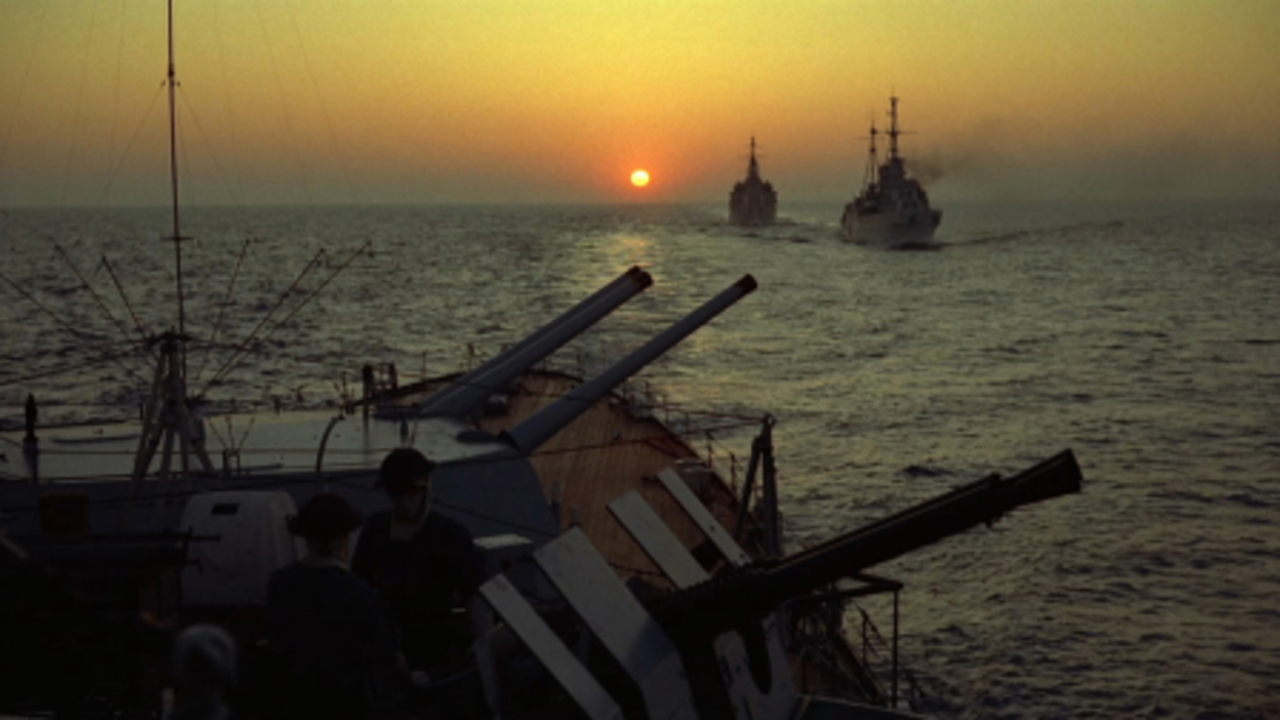 The Battle of the River Plate aka Pursuit of the Graf Spee 1956, directed by Michael Powell and Emeric Pressburger, staring John Gregson, Anthony Quayle, Peter Finch, Ian Hunter, Jack Gwilliim, Bernard Lee, Anthony Bushell, and others including future Avengers star Patrick Macnee, and Christpher Lee as a bar owner in Montevideo, all his dialog is in Spanish. British war movie "In the fall of 1939, the German heavy cruiser (referred to as a pocket battleship) Graf Spee seems to have command of the Atlantic. In the first three months of World War II, she was responsible for sinking 9 ships. The British sent three cruisers commanded by Commodore Henry Harwood to confront her. The battle took place on December 13, 1939 and the British came out on top. The Graf Spee headed for the neutral harbor of Montevideo, Uruguay. They were given only a short time to effect repairs and the British did their best to make them believe a British fleet of 6 or 8 ships awaited them. Rather than chance the loss of his men, the German captain ordered the Graf Spee scuttled"" This is not a spoiler since it's in any reasonable WWII book. Maybe the last great movie of The Archers (Powell and Pressburger), it's a great re-enactment of a famous episode during WWII. The British ar always polite no matter how high their ranks are, but also a bit snobbish. The movie can be separated in the parts, First is Graf Spee hunting British merchant ships and torpedoing them and seen from the German side, Second is the sea battles seen from the British side, Third part that takes place in Uruguay Montevideo harbour (Filmed in Montevideo and on the coasts of Malta) and from having been on sea most of the film the movie goes on land and becomes a diplomatic quest since Uruguay was a neatral port. Peter Finch is great as the German Captain Langsdorff, a Captain who thinks it's wrong to shoot down mercant ships and civilians, and rescues as many as possible. The Real Langsdorff commited suicide a few months later in Buenos Aires. OT: I had a great uncle who worked in the Swedish Merchant marines, who was though dead during WWII, he turned up suddenly in the late 1940s, among things he left behind when he passed away was photos we never understood, after seeing this movie in early 1990s on TV, OMG he was there when it happened in Montevideo!     Actor Bernard Lee meeting the real Captain Dove, one of the ships shot down by Graf See, Bernard Lee played Captain Dove, and Captain Dove was a technical advisor on this move, plus taking a role as a prisoner too.