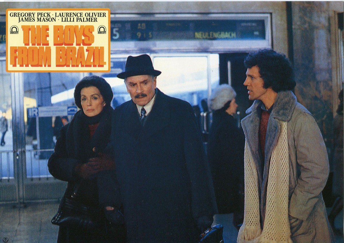 The Boys from Brazil 1978, directed by Franklin J. Schaffner, based on a novel by Ira Levin, staring Gregory Peck, Laurence Olivier, James Mason, Lilli Palmer, Uta Hagen, Steve Guttenberg, Denholm Elliott, Rosemary Harris, John Dehner, Jeremy Black, Bruno Ganz, Walter Gotell, John Rubenstein, Adele Meara and others. Thriller-drama "Barry Kohler (Guttenberg), a young Nazi hunter, tracks down a group of former SS officers meeting in Paraguay in the late 1970s. The Nazis, led by Dr Mengele (Peck), are planning something. Old Nazi hunter, Ezra Lieberman (Olivier), is at first uninterested in Kohler's findings. But when he is told something of their plan, he is eager to find out more. Lieberman visits several homes in Europe and the U.S. in order to uncover the Nazi plot. It is at one of these houses he notices something strange, which turns out to be a horrible discovery...". Thriller with science-fiction undertones, at least back in 1978, that is a well-made movie with well-known veteran actors in the leads. We follow two paralell stories, one is the execution of Mengele's fantastic and fanatic plot to murder selected persons in USA, Canada and Norther Europe, the other story is the Nazi-hunter's detective-like work to piece clues together while he unwittingly crosses paths with the Mengele plan. The movie holds up well until the final showdown, that I thought was a bit of a disappointment. Great use of locations in Vienna, Salzburg, London and Pennsylvania, with Portugal standing in for Paraguay. Back in 1976 when the novel was published there was still a great mystery surrounding Mengele and what he might have done and was doing in South-America, but now we know that he did not do anything like described in the plot, so the whole story in the novel and the movie should be considered pure fiction. The real Mengele died rather poor in a stroke on a beach outside Sao Paulo, Brazil in 1979. The movie was nominated for three Oscars, Best Actor in a Leading Role (Olivier), Best Film Editing and Best Music, Original Score (Jerry Goldsmith).